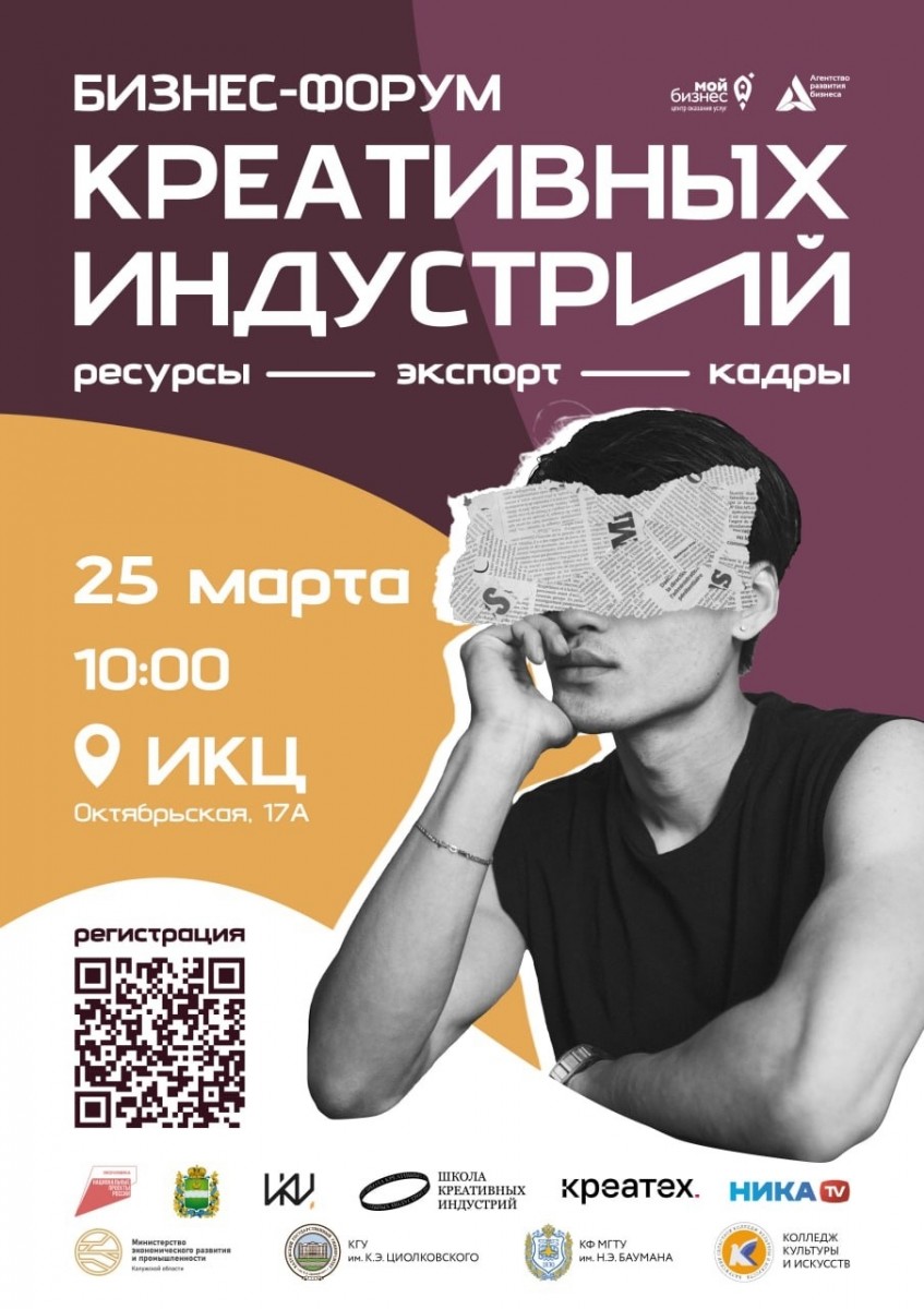 125 марта 2026 года в Инновационном культурном центре Калуги (ул. Октябрьская, 17а) состоится бизнес-форум креативных индустрий. Организатором выступает центр «Мой бизнес» для достижения целей национального проекта «Эффективная и конкурентная экономика».